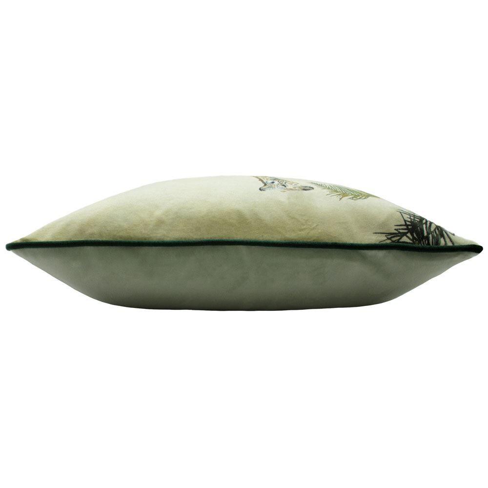 Finished with a piped edge trim and a tonal green velvet reverse, the Manyara Giraffe cushion cover is the perfect addition to any room in your home.